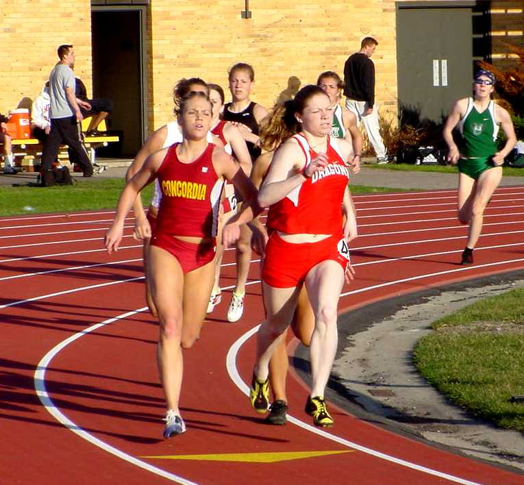 Heidi Brenden (Sr., Minot, ND) continued her string of outstanding distance performances. In the 1500 meters she held off sister Heather (Sr., Minot, ND) to capture the event in a time of 4:50.90. Sophomore Katie Martin (Bozeman, MT) won the 3000 meters as runners from the outstanding Cobber cross country program continued to score big points for the track team. Sara Grineski (Sr., Moorhead, MN), last year's MIAC Championship Meet Outstanding Performer, won the 400 meter hurdles in a time of 65.47, which is only a little more than a half of a second off the national qualifying mark of 64.84. Whitney Ostrem (Sr., Roseville, MN) finished second in the 400 while soccer teammate Kendra Lee (So., Jamestown, ND) took third in the 800 meters.