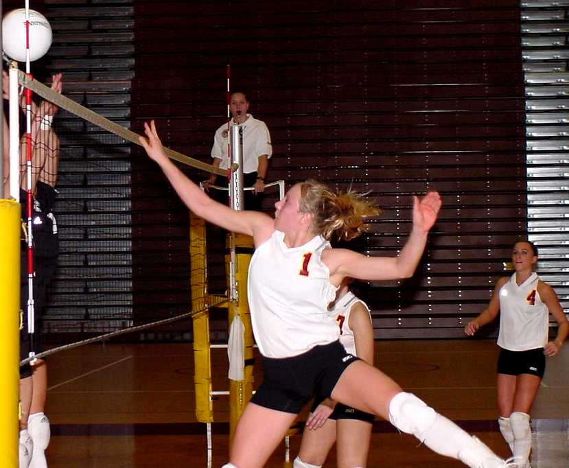 (Jessica Walden) Attack error by Pat Lawton (block by Jackelyn Barten;