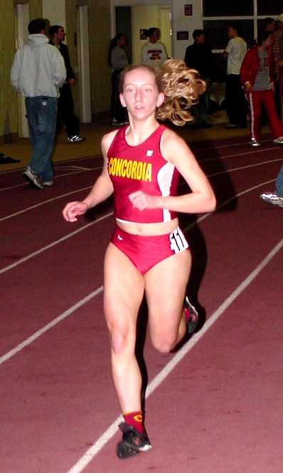 | Julie Miller (Fr., Duluth, Minn.) strides ahead in the 1500 meter run. |