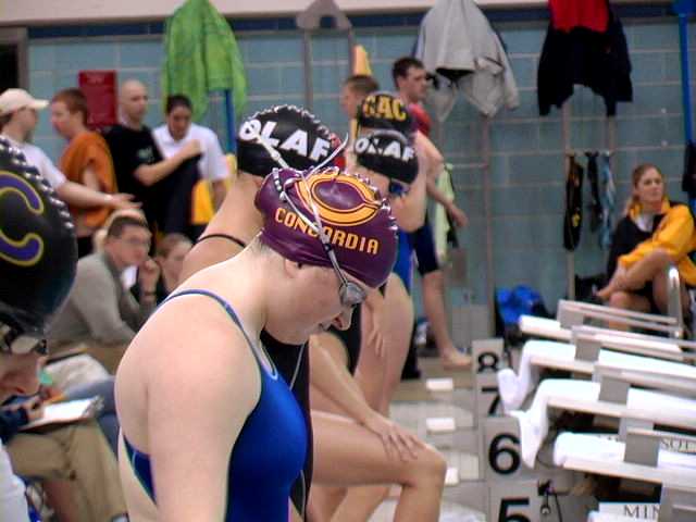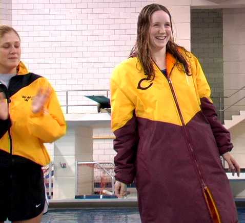 | Shannon Brown shows her form in the 200 yard breaststroke. | Shannon Brown psyches herself up before the 200 yard breaststroke. |