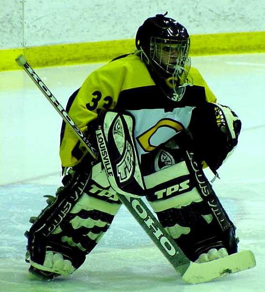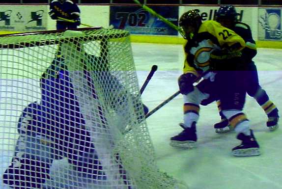 | Richter swarms the net in search of a goal. | Jamie Savage gets ready for action. |