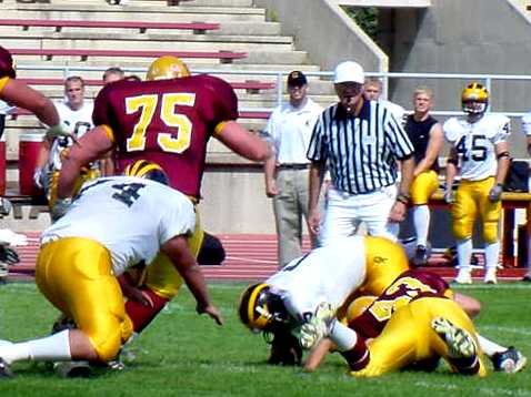 Gustvaus leads the overall series 40-30-2. They are one of only two teams in the MIAC that holds an edge over the Cobbers. St. John's is the other conference team that has won more games in their series with the Cobbers. Despite trailing in the overall series, Concordia has dominated in the past 11 years. The Cobbers have won 8 times in the past 11 meetings. Last year, Concordia bolted to a 14-0 lead late in the second quarter and then held on to win 20-14 at Jake Christiansen Stadium. Bobby Clark scored two touchdowns and ran for 63 yards. Jeremy Hinderks was the team's workhorse on the ground. He ran the ball 13 times and picked up 88 yards. Quarterback Ryan Hebrink scored Concordia's third touchdown and combined to pick up 170 yards of total offense. In 2001, the Gustavus offense amassed 500 yards of total offense en route to a 42-28 victory over Concordia. Running back Andy Traetow led the way for the Gusties, picking up 209 rushing yards on 27 carries and one touchdown, as well as catching 5 passes for 74 yards. Quarterback Joe Thorvig completed 19 of 41 passes, including four touchdown tosses, two to Chris Greavu, and one each to Ryan Hoag and Jeff Pelant. Pelant also scored a rushing touchdown for the Gusties. The last time Concordia won at Gustavus was in 1996 when Concordia jumped out to a 24-0 lead at the half and cruised to a 31-6 win over Gustavus in St. Peter. The game was the MIAC opener for both teams. Tory Langemo got the scoring off to an early start with a 69 yard TD on a pass from Ethan Pole with 10:47 left in the first quarter. The Cobbers' 305 yard ground attack was led by Eli Schuff's 141 rushing yards on 29 carries, including a 46 yard run to set up the Cobbers' second touchdown early in the second quarter. Senior fullback Mike Flinn came off the bench to wrack up 85 yards on 11 carries and Mike Halvorson gained 60 on 13 carries, including that second quarter TD on a 5 yards run. Rookie Clayton Horgen hit a 42 yard field goal, the first of his career, to make it 17-0with 3:53 left in the second quarter. Then Flinn banged one in from 3 yards to make it 24-0 at the half. Craig Gilbert led the Cobber defense with 12 tackles. The Cobbers held the Gusties to just 60 yards rushing on 22 carries and 233 yards total. The Starting Lineups: