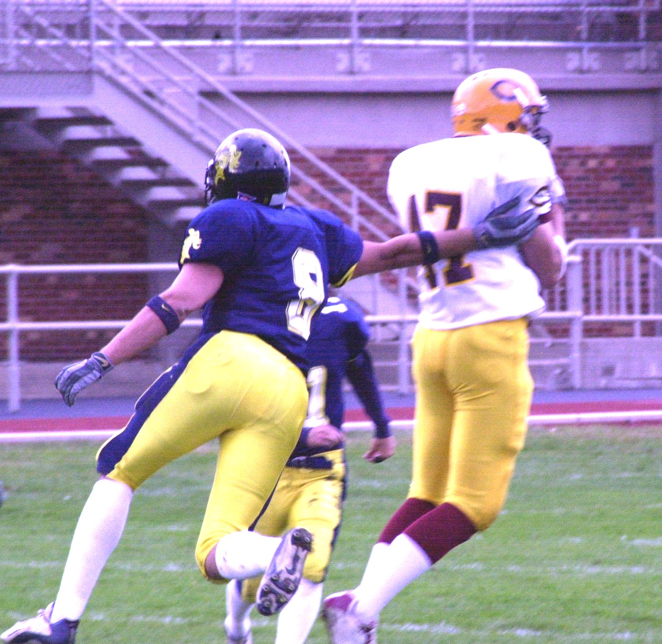 | Eric Preszler (Jr., Worthington, Minn.) steps in front of a Carleton receiver to make the interception in Concordia's 45-7 win. |