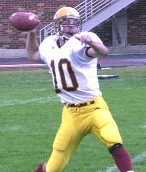 | Ryan Hebrink (Sacred Heart, Minn.) gets set to throw 1 of his 17 passes in the game. |