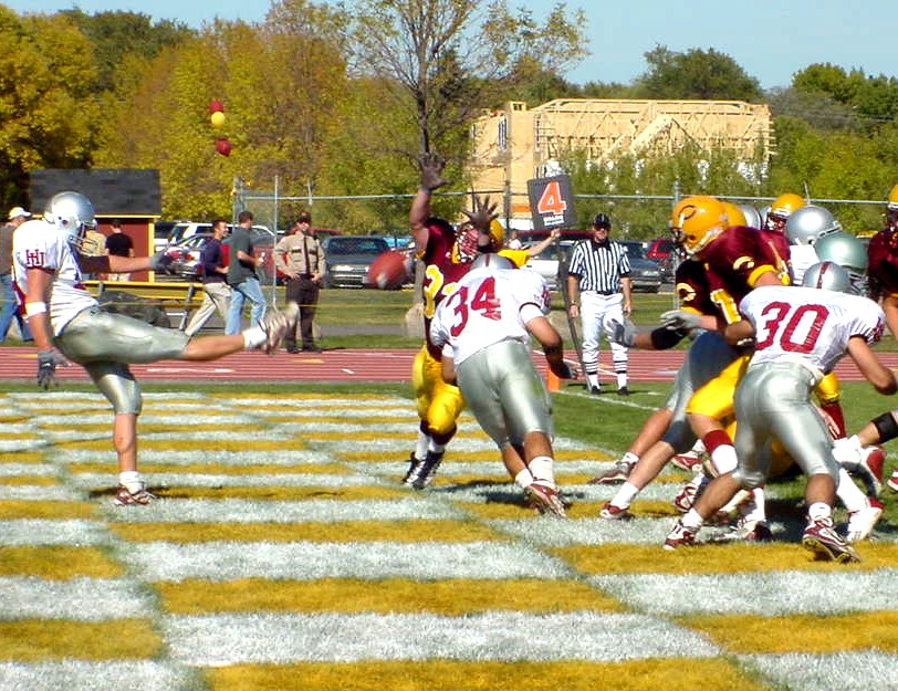 | The Concordia special teams put pressure on the Hamline punter. |