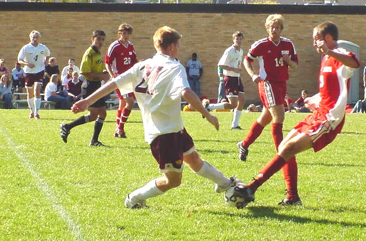 | Andy Gunderson (Moorhead, Minn.) tackles through a 50-50 ball in the middle of the field. |