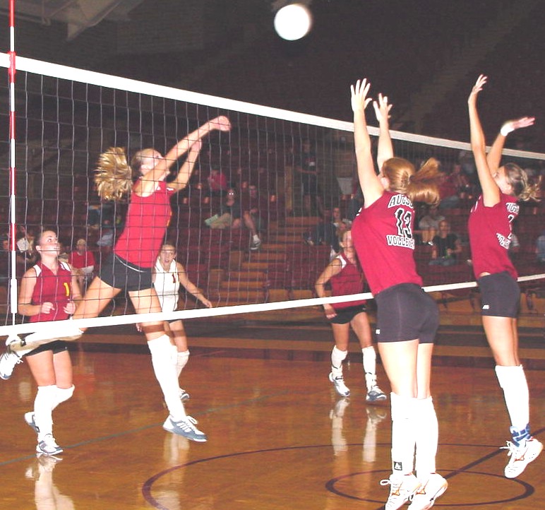 | Rebecca Shane (Detroit Lakes, Minn.) with 1 of her match-high 13 kills. |