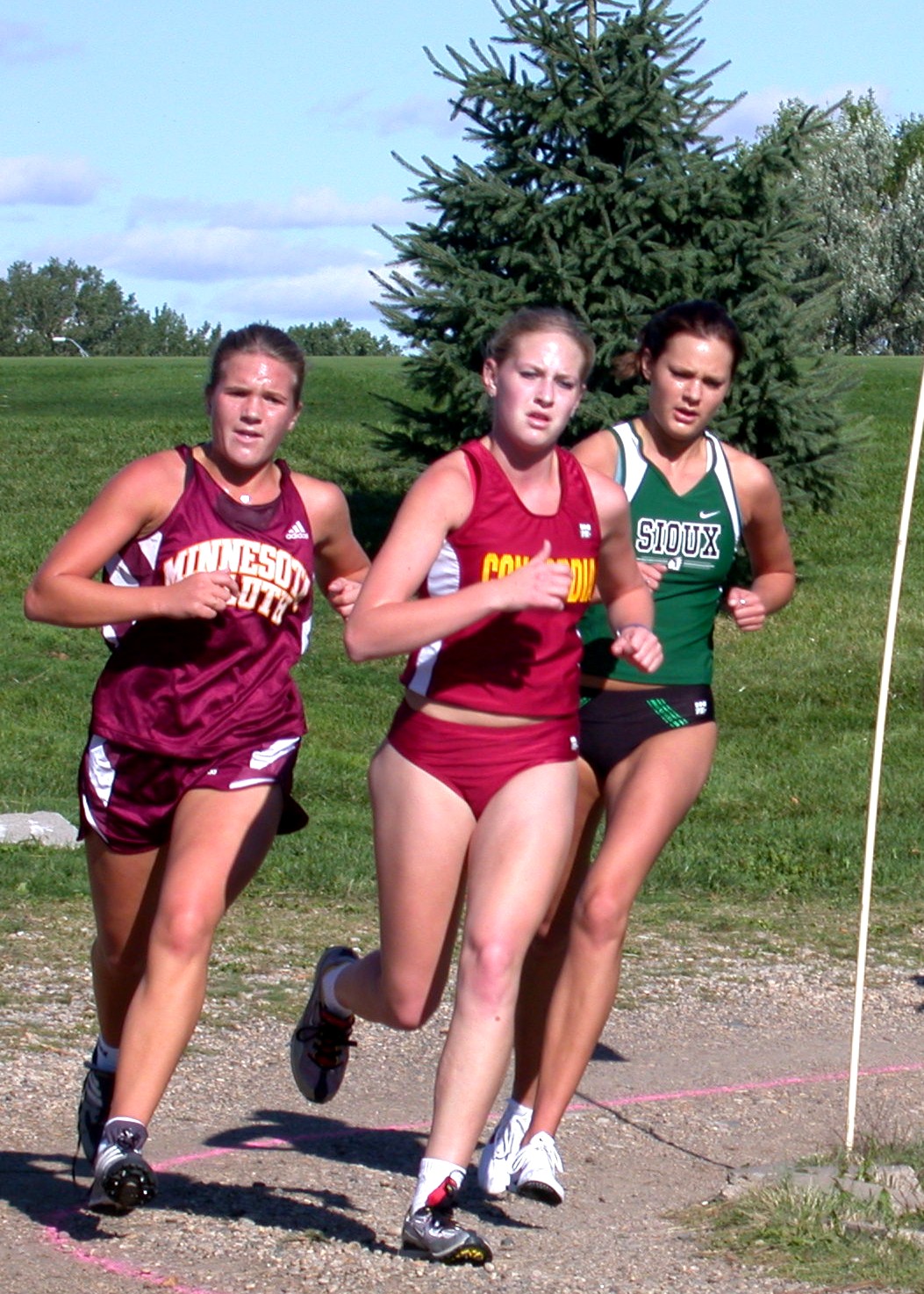 | Rachel Dwyer rounds flag with Emily Judd close in tow. | Kristine Jensen races to finish line. |