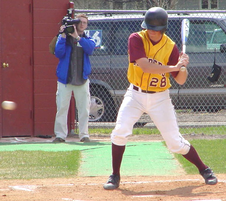 Luther Kangas watches the pitch as the local news crew caprtures the action.