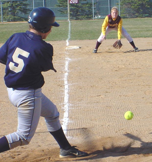 Jolene Rebertus gets ready to make the play at third base.