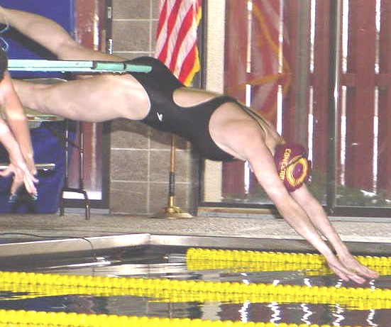 Tina Mackedanz takes off in the 50-yard freestyle.