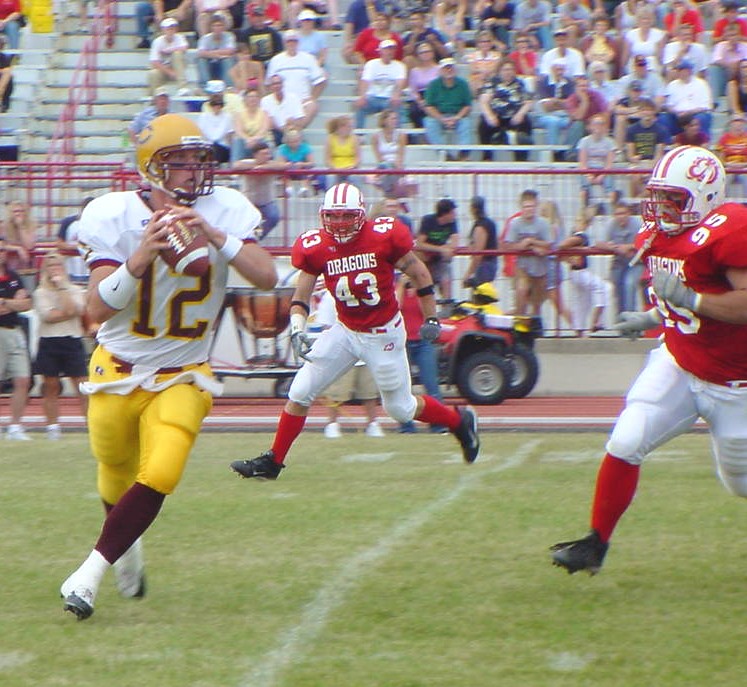 Jacob Odermann rolls to his right as he looks downfield.