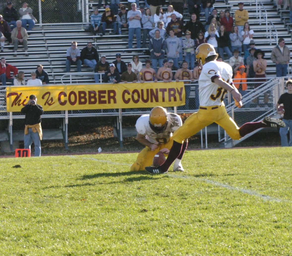 Brian Halverson makes the kick in front of the Cobber Nation!