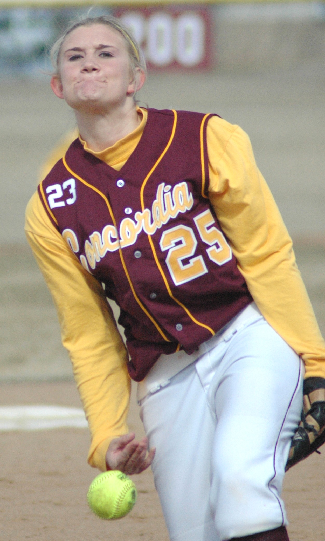 Lindy Sparby bites down to get extra velocity on the pitch.