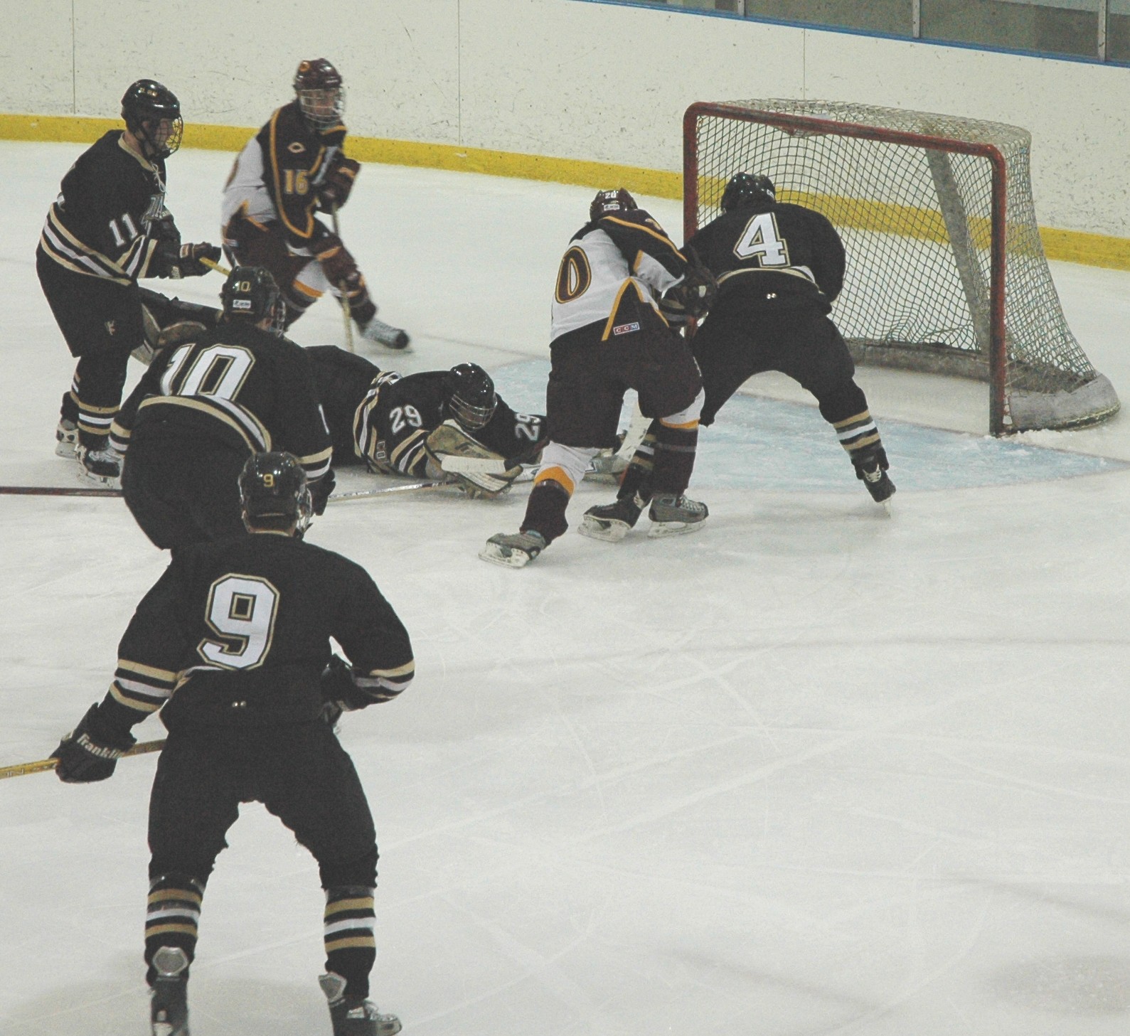 by the sprawled out St. Olaf goalie.