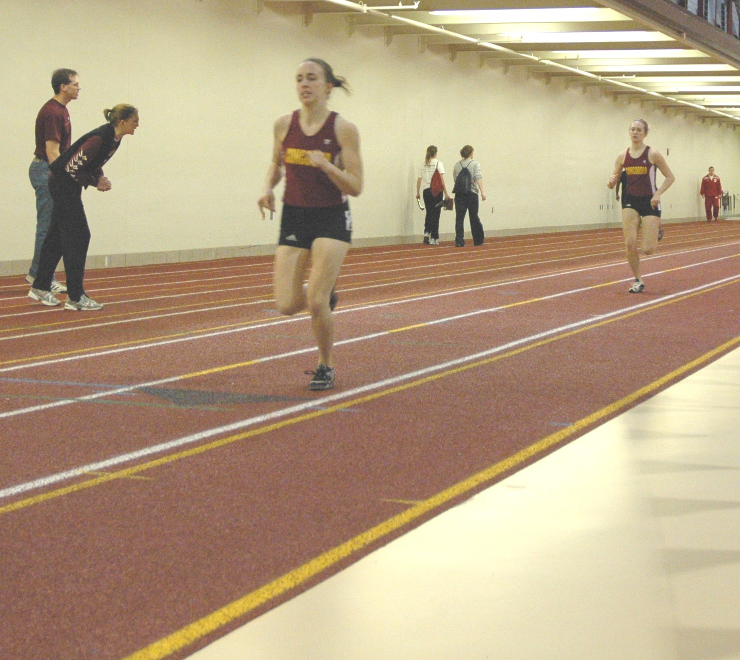 Natalie Hanson alone in front in the 1000 meters.