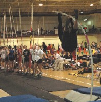 Entry Fee: $5.00 per person or $75.00 per team, men and women separately. Please pay in the North Balcony. Eligibility: Collegiate and open athletes. Unlimited entries. No limit on the number of Relay teams. Scoring: No team scoring will be kept. Declaration: Section/Flight sheets and receipts may be picked up in the balcony. Final confirmation of the entries needs to be made at the Scorer's Table in the balcony overlooking the finish line prior to the start of the meet. A limited number of additions may be made prior to the meet at the Scorers Table. Schedule: Tentative time schedule enclosed. The schedule may be changed based on the number of teams/entries. Check at the Scorer's Table prior to the meet for any changes in the schedule. Running Events: Six lane, flat 200M EPDM encapsulated surface (resurfaced in 2004) - 1/8-1/4" non-pin spikes. 4x200 Meter Relay will be run with an eight turn stagger, running lanes the whole way. Preliminaries and Final in the 55 M and 55 M Hurdles only, all other events run as timed finals. Events will be seeded by time. Please make accurate entries. In the 55 Meter Dash and 55 Meter Hurdles the Heat Winners advance to the Final, plus the next fastest time(s) to fill lanes, if necessary. If there are more than 7 heats we will have a two section timed final with the 7 fastest heat winners in the same section. The best performances will compete in the first section for all running events. The 200 Meter will be seeded at the Start Line 15 minutes prior to the start. Field Events: Long
