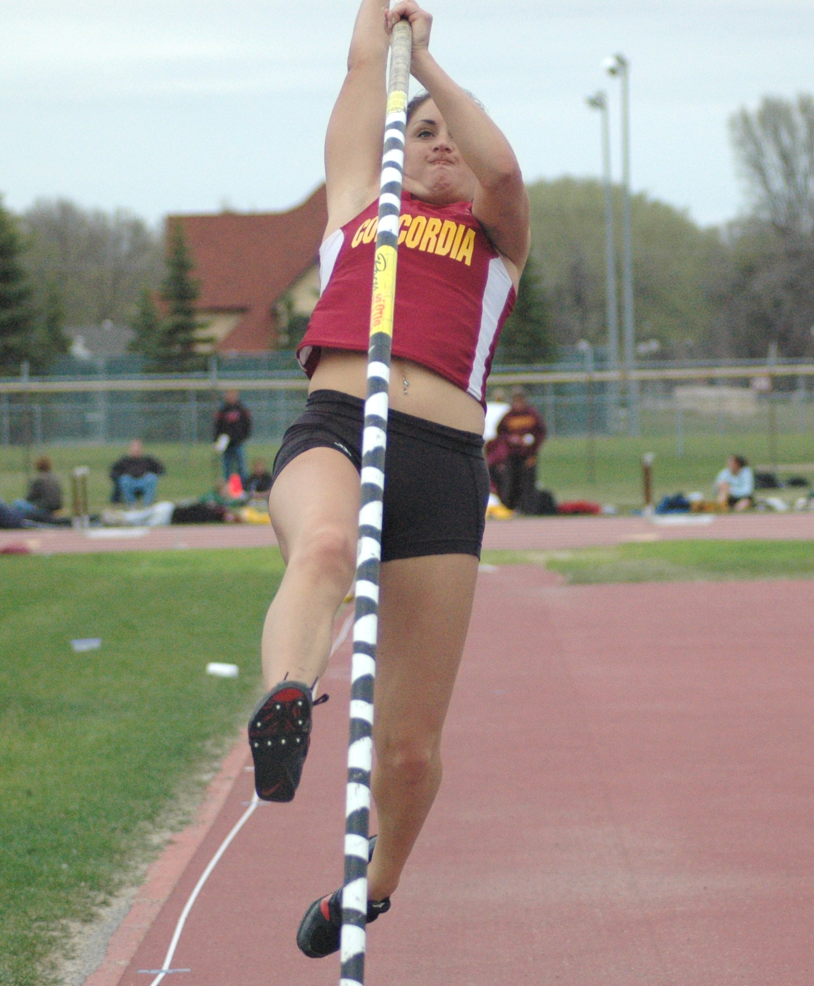 ready for takeoff on her way to clearing 11-0.75 in the pole vault.