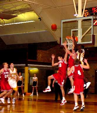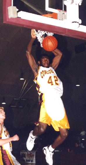 Kermit Cooper goes high amid three defenders in Concordia's