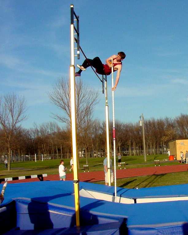 (So., Inver Grove Heights, MN) goes up and over the bar in the pole vault at the