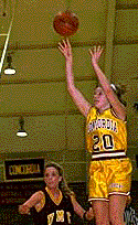 1/23/97 Concordia lost at home to Bethel 50-55 to drop them into a tie for second place in the MIAC with Bethel. The Cobbers shot just 17% from the field in the first half and fell behind 30-18 at the break. They mounted a comeback and pulled to within one point under with just under nine minutes left but were never able to grab the lead. Concordia was led by Holly Zollar with 15 points and eight rebounds. Bethel was led by Beth Johnson's 16 points and Tara Dutton's 16 rebounds.